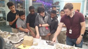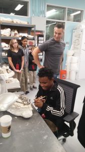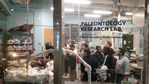 I have been bringing students to the MNS for years. We have enjoyed the floors of displays with a wide-range of topics and experiences, the living creatures and models, the interactive lab classes, and the movies. This year, I knew I could promise my students an experience unlike most visitors. With the blessing of my Assigned researcher, Dr. Bourke, and the head of the Paloentology Lab, Dr. Zanno, my students got to enter the lab for a tour not many visitors are privileged enough to receive.