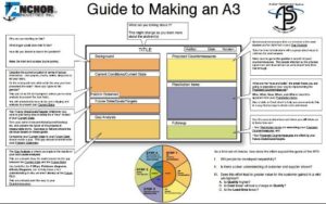 form. The A3 looks at an operational change initiative across nine different areas of documentation. The purpose of the form is to create a record of a change initiative and to ensure that the entire team understands the purpose and scope of the operational change. The nine areas include 1. Reasons for the action – a background statement supplemented with data and objective criteria. 2. Initial state – a description of the current state of the issue referencing specific metrics. 3. Target State – Where do we want the process to improve, again using specific metrics. 4. Gap Analysis – What needs to change to get to the target state. 5. Solution Approach – how we make changes, including a specific list of potential solutions. 6. Rapid Experiments – A list of first pass fast implementation experiments and an analysis of results. 7. Completion plan – Due dates for changes to be implemented. 8. Confirmed State – An analysis of the efficacy of the changes, in theory, it should match number 3 Target State. 9. Insights – What are the fundamental lessons of the event and the improvement cycle. Rick and I discussed how the form can be used, or on occasion misused. Sometimes a process change will lead to a loss in quality, and he made it clear that would lead to backmapping and figuring out a different solution.