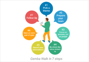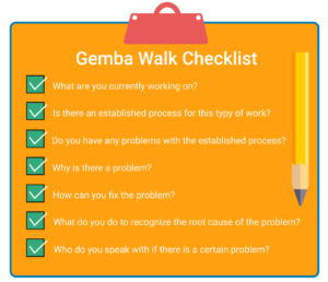 The goal or objective for the day may be productivity, cost efficiency, safety, or quality. In order to be as precise as possible, the teams prepare a list of questions they are going to focus on. The operators that will be observed are prepared for what is going to happen. All team members need to have a clear understanding that the Gemba walk is a common process where the final destination is continuous improvement. The leadership team wants the operators to feel comfortable and willing to collaborate.