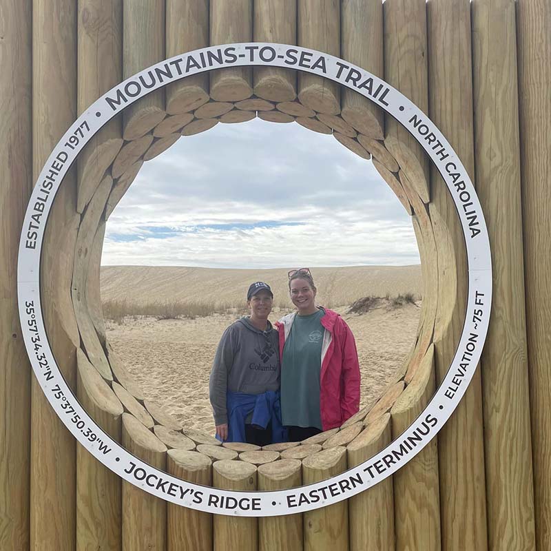 Living along the Outer Banks is wonderful but sometimes we do not fully appreciate the treasures in our backyard. For instance, we walked the trails at Nags Head Woods as part of our Mountains to the Sea experience, and I did not know those trails were there. It has been such an eye-opening experience. After spending time at Jockey’s Ridge with Mountains to Sea, I knew we had to take our sixth-grade students there for our Community Learning Day. Just recently, several of our coaches, myself, and one hundred 6th graders learned from rangers there and hiked the dunes. I would not have considered exploring these local natural resources if it were not for the insights I gained through Mountains to Sea.